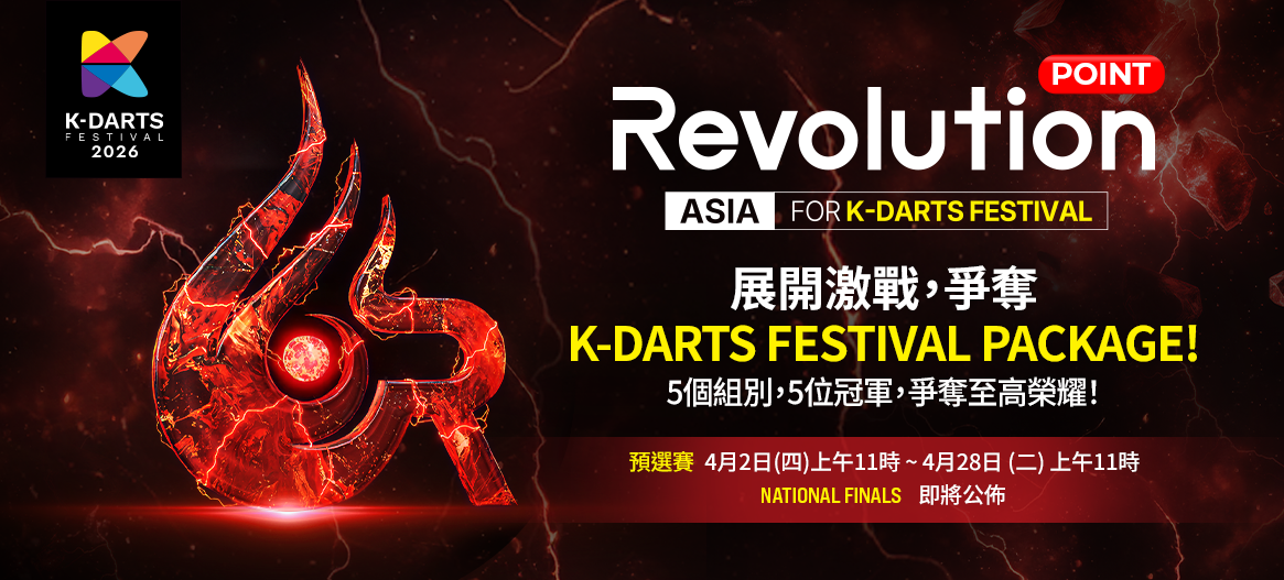 與同組別的選手一較高下,爭奪嬴取大獎【K-DARTS FESTIVAL Entry Package】的機會!
